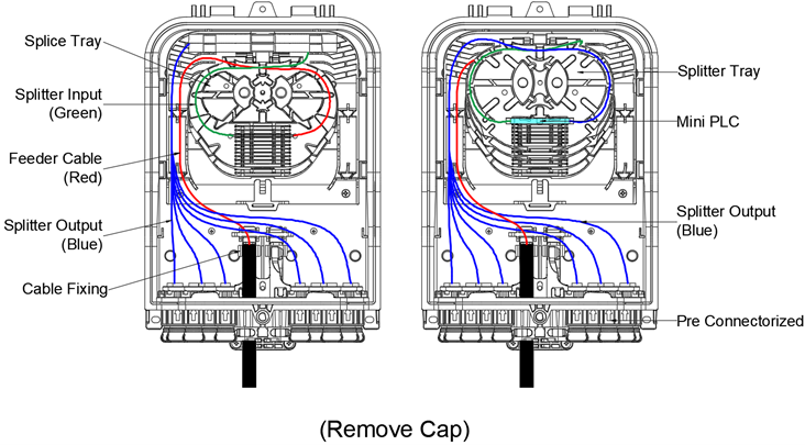 ·Ability to host 4 mini steel PLC splitters 1:4 or 1:8 or 1:16