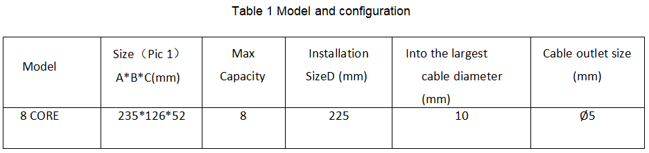 (3)Clamping for feeder cable and drop cable, fiber splicing, fixation, storage, distribution...etc all in one.