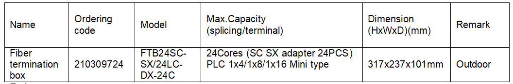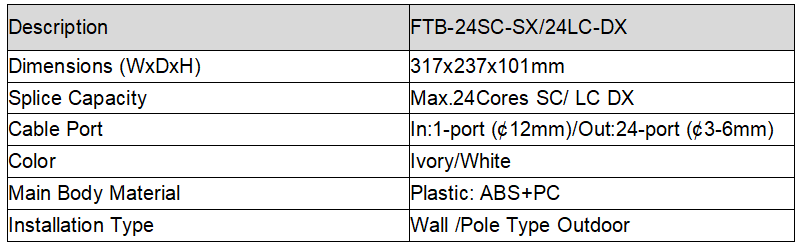 Fiber Termination Box (FTB) is mounted to in & out side wall of building or pole to distribute and connect optical cable for distribution of subscriber ,the box achieve mechanical splicing, splicing and distribution of fiber, use for FTTH network