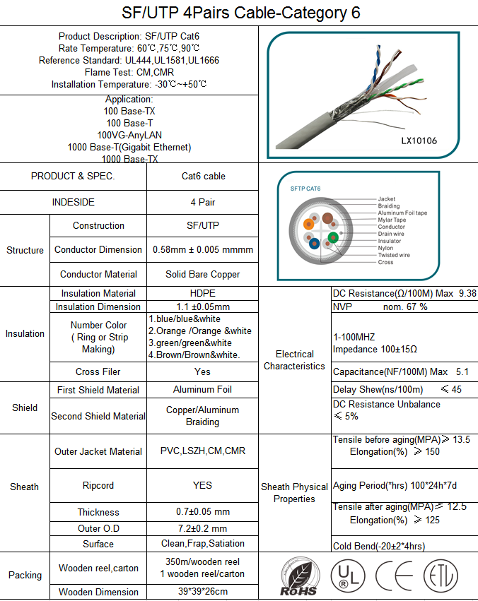 SF/UTP 4Pairs Cable-Category 6